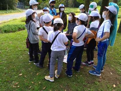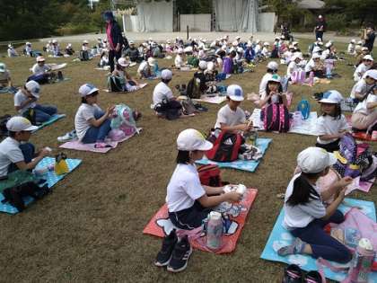 オリエンテーリングの途中では、班長を中心に高学年が水分補給やトイレ休憩のタイミング等を考えて班のみんなのために行動する姿が随所で見られました。どのグループも制限時間内に全ポイントを回ることができ、ゴールしました。お昼はおいしいお弁当です。1年生は小学校に入学して初めてのお弁当を持っての校外学習でした。秋晴れのよい天気に恵まれ、気持ちのよい1日をすごすことができました。
