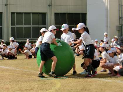 リレー・大玉ころがし・玉入れ。チームで協力してがんばりました。