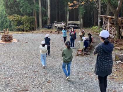 キャンプファイヤー係とトーチ係が、キャンプファイヤー場の下見と、流れを確認しています。