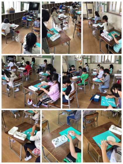 4月13日(火)、2年生が紙粘土で美味しそうな料理を作っていました。