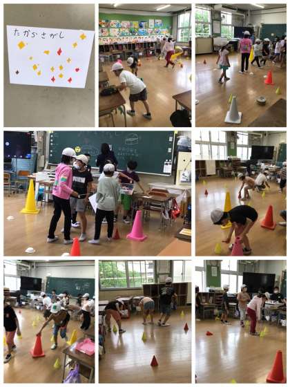 「宝さがし」は、名前の通りで、教室に隠された宝物をみんなで力を合わせてさがしました。