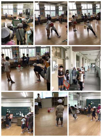6月16日(水)、2階のお店は、「じゃんけんまん」「宝さがし」「ペットボトルボーリング」のお店がありました。