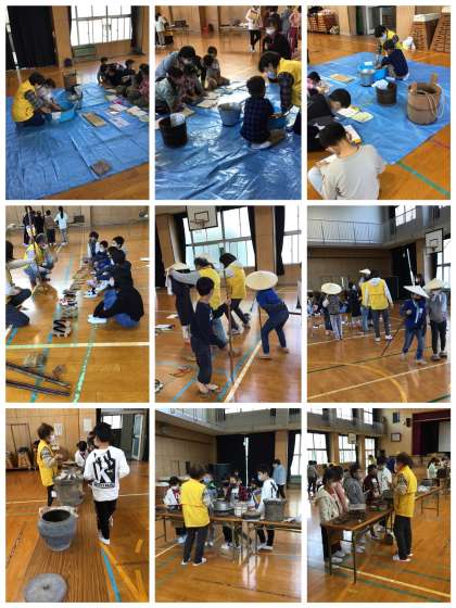 子どもたちにとって、洗濯板の洗濯や下駄に草履、七輪にお釜、豆炭あんかや湯たんぽ、ダイヤル式の黒電話はほとんど使ったことも見たことのない「むかしの道具」なんですね!!遠里小野と繋がり深い菜種油についてもやさしく教えていただきました!!