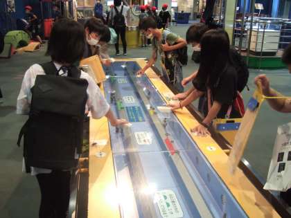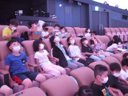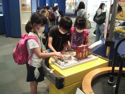 最初に、リニューアルされたプラネタリウムを見ましたが、とても迫力がありました。館内は、上の階から順番に下りながら見学しましたが、子どもたちは、いろいろなものに興味を持ち、じっくりと見て、体験してとても楽しそうでした!!