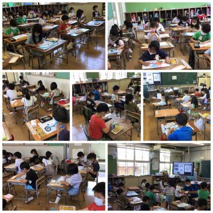 8月28日(月)、1年生の図画工作の授業の様子です。クレヨンで「夢の自転車」を描いていました。