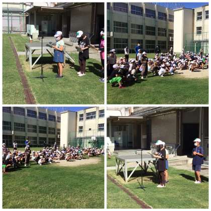 9月5日(月)、全校朝会で図書委員会からの表彰がありました。