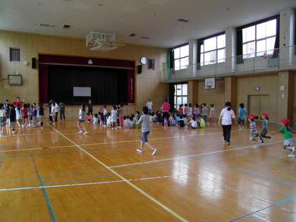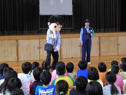 夏休みを間近にひかえた7月9日(木) 不審者が校内に侵入したという想定で防犯避難訓練をしました。犯人は校内に侵入後、児童会室前で確保され、子どもたちは全員講堂に避難しました。避難中はおしゃべりもなく、すばやく集まることができました。その後、警察の方から誘拐に気をつけるためのいろいろなことを教わりました。教わったことを忘れず、安全に気をつけて夏休みを過ごしましょう。