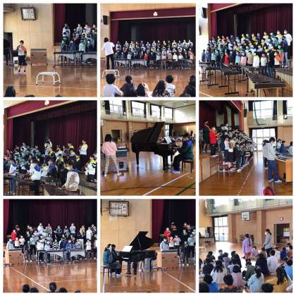 合唱曲は「この星に生まれて」、合奏曲は「君の瞳に恋してる」で、来週の火曜日に開催される住吉区交歓音楽会で発表します。澄みきった歌声のハーモニー、迫力ある演奏に圧倒されました。感想を発表した下級生の「5・6年生になったらわたしもやりたい」と瞳を輝かせていました!!