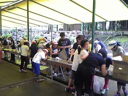焼き板に絵をかきます。うーん、なにをかこうかな。緑の山々、広ーい空、みんなで囲んだキャンプファイヤー、、、。またひとつ、林間の思い出ができました。