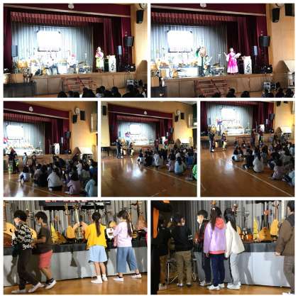 世界のいろんな民族楽器を使った楽器の演奏を聴き、亀の甲羅やアルマジロ、リャマの皮を使った弦楽器を見せていただきました!!