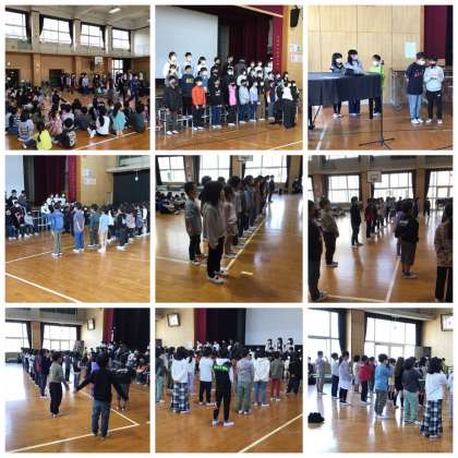 3月9日(木)、卒業生を送る会をしました。この1年間、学校の中心となり、みんなを引っ張ってきてくれた6年生に感謝を込めて、1〜5年生が企画しました。