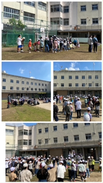 降り続いた雨もあがり、青空のもと、児童集会が行われました。縦割り班で集まって,集会委員がじゃんけんゲームをしてくれました。最後まで勝ち残ったのは、だれかな?
