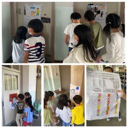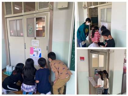 2年生が1年生をリードして案内しながら、部屋の前に貼られたクイズに挑んでいました。正解がわかると、シールをゲット! 教室がたくさんあるから、お世話役の2年生は大変だったと思いますが、「コンプリート」したシートを見せてくれた1年生は、とてもうれしそうで満足そうでした。
