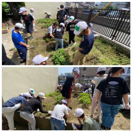 その後、実際に確かめるためのタネをまいたり、学習園の手入れをしたり。