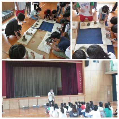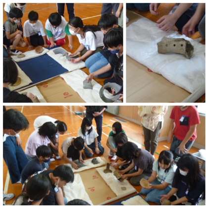 本物の弥生土器も、「さわっていい」ということで、説明を聞いたあと、やさしく持ちながら、これは何に使ったのかな? と想像をめぐらせていました。