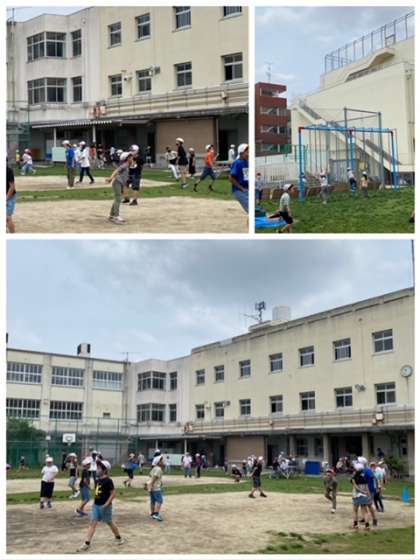 運動場では、ドッジボールやみんな遊びをする子どもたちで賑わっています。
