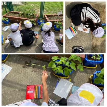 葉っぱをそーっと触って感触を確かめている子もいました。