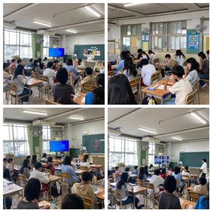 2時間目、歯科衛生士さんから、歯と口の健康についてお話を聞きました。歯垢が残りやすい所は、どこかな。