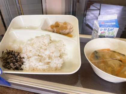 鶏肉のおろしじょうゆかけ みそ汁 魚ひじきそぼろ