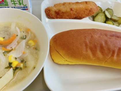 サーモンフライ 豆乳スープ きゅうりのバジル風味サラダ
