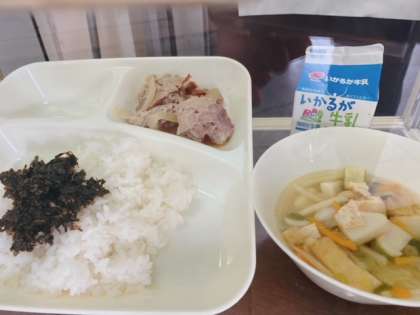 豚肉の甘辛焼き 五目汁 のりのつくだ煮