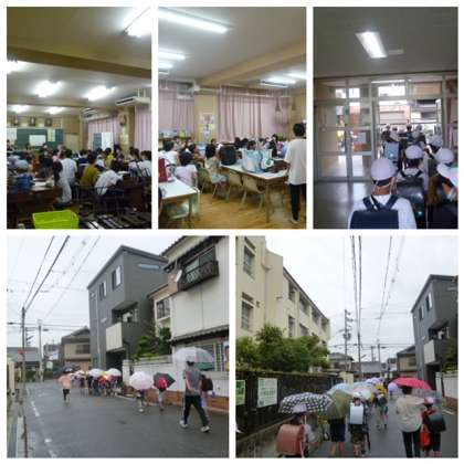 それぞれの地区長、副地区長を中心に、メンバーの確認や解散場所の確認などを行いました。下校時は少し雨が降っていましたが、班ごとにまとまって解散場所まで行くことができました。