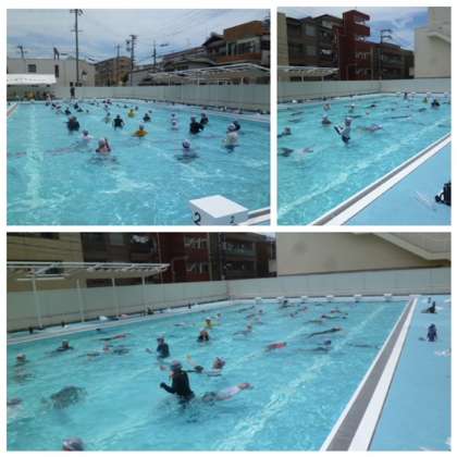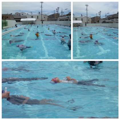 衣服を着たままの動きにくさを体験し、少しでも長く浮いていられる方法を学びました。