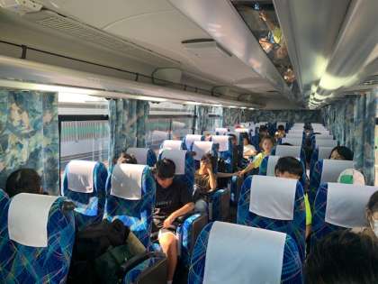 7月21日金曜日、ハチ高原に向けて無事出発しました。 車内の様子です。