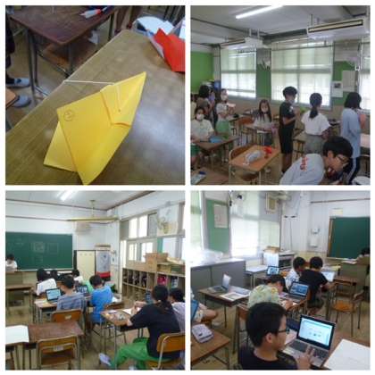 画用紙とタコ糸で「くるくるひこうき」を作るクラブもあれば、タブレットでマイカレンダーを作るクラブ、様々なゲームを楽しむクラブも。暑くても、運動にいそしむ猛者もいて、活動を存分に楽しんでいました。