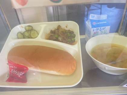 牛肉のデミグラスソース煮 スープ きゅうりのピクルス