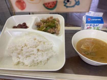 ?豚肉の甘辛焼き とうがんのみそ汁 金時豆の煮もの