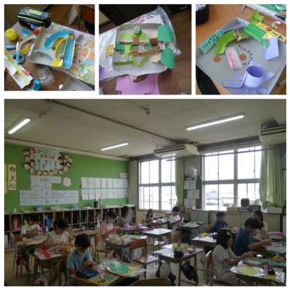 図工の時間、コロコロ転がるビー玉を使ったゲームを作成中。どんな作品が出来上がるのか、楽しみです。