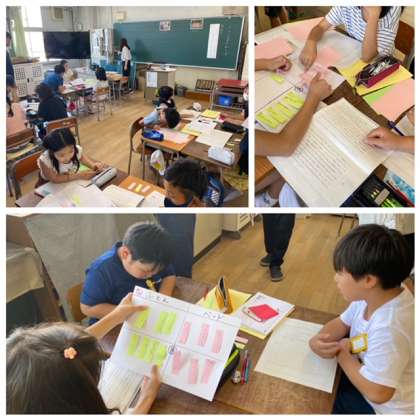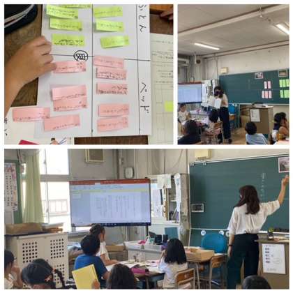 「和」と「洋」の違いを見つけ、それぞれの良さについて書く学習です。この日は、「布団」と「ベッド」についてグループで意見を整理しました。