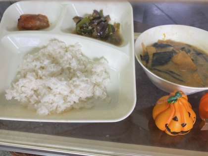 鶏肉の照り焼き かぼちゃのみそ汁 なすのそぼろいため