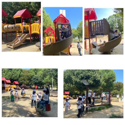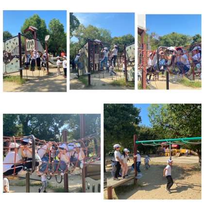 学校にはないアスレチック風遊具や変わり滑り台などで思う存分遊びました。