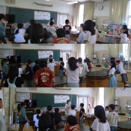 理科の時間、水鉄砲で遊んでいるのではありません。水を閉じ込めたときと、空気を閉じ込めたときの違いについて学習しています。
