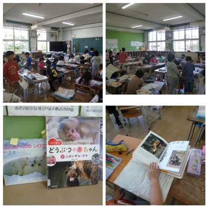 国語の時間、動物について姿や特徴などを本で調べて文章を書いています。