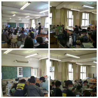 雲の動きと天気の変化について、タブレットで画像を見ながら考えました。
