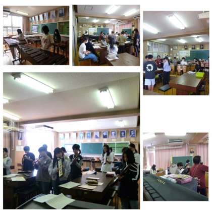 音楽室から、楽しいリズム♪の合奏が聞こえてきました。