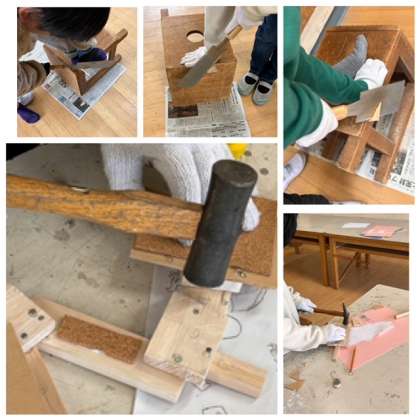 かなづちでトントントン。出来上がりが楽しみです。