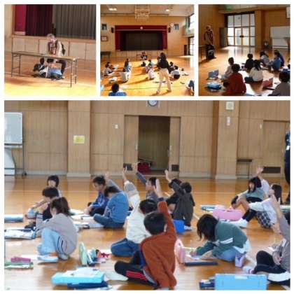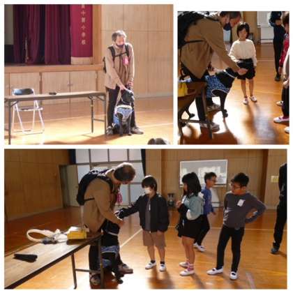 連れてきてくれた盲導犬のTくんは、まだ2才で、Hさんと生活しながら訓練中とのこと。ハーネスを外して児童と触れ合う時間を作ってくださったときは、しっぽを大きく振っていました。