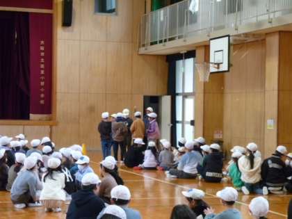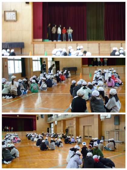 今日の児童集会は、舞台の上で一瞬見えるものが何かを当てるゲームでした。