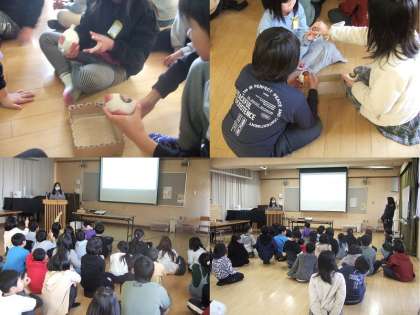 4年生は眼球の模型を触らせてもらって、一度近視になってしまったら治らないこと、そしてひどくならないようにどんなことに気を付けなければならないかを教えていただきました。