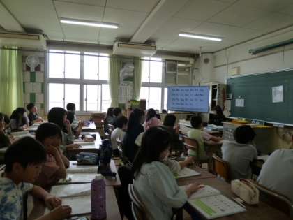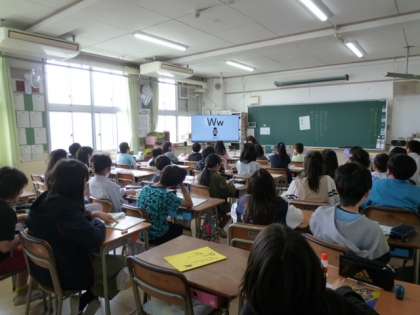 きらきら星のメロディが聞こえて来た5年生の教室をのぞくと、アルファベットの歌を練習していました。