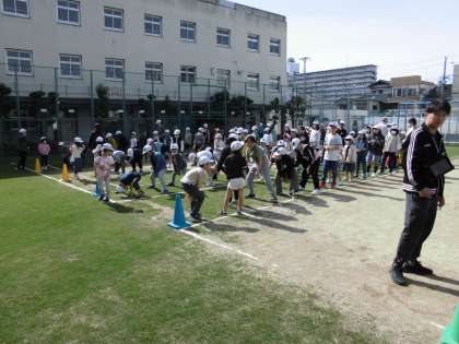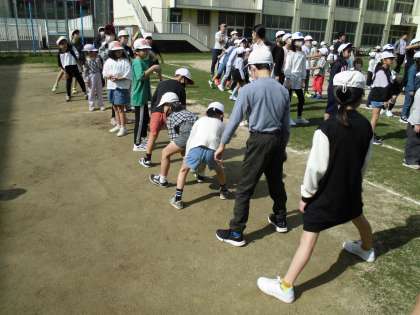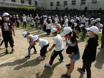 今日の児童集会は、ボールまわしです。集会委員会の子どもたちがみなさんに見本を見せることができ、各色1〜3班、4〜6班で協力してボールをまわしました。