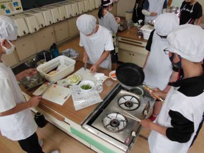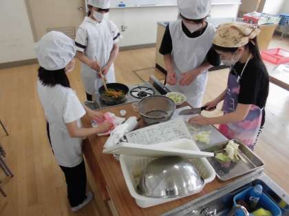 役割に分かれて、食器を洗ったり、野菜を切ったり、炒めたり・・・