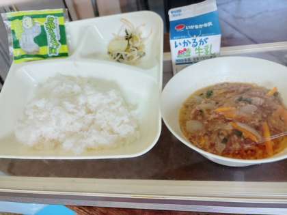 マーボー春雨 チンゲンサイともやしの甘酢あえ まっ茶大豆 ごはん、牛乳