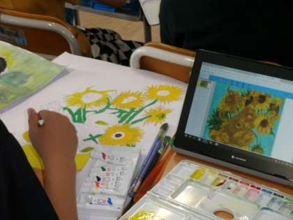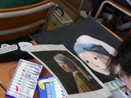 世界の名画の色使い、どうすればこの色が出せるか。絵の具のどんな色を混ぜればいいか、考えながら色を作っています。