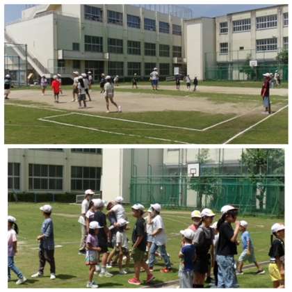 1年生と6年生も一緒に遊びに来てきます。何をしようか、相談した結果、おにごっこ。