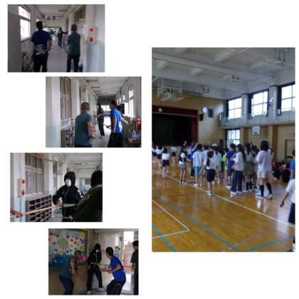 不審者が玄関から侵入、2階3階へ上がって教室に入ろうとするのを想定して訓練を行いました。